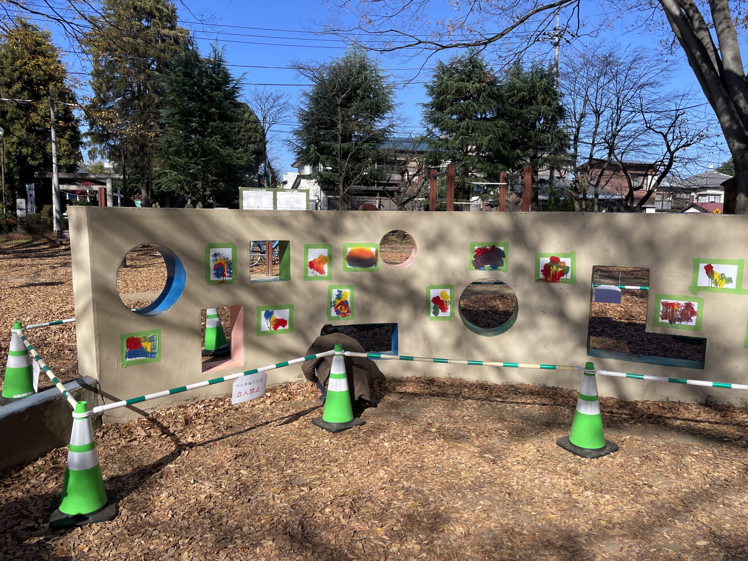 対象となった遊具は砂場に設置された壁になります。本遊具は、長年公園利用者の方々から親しまれており、本年4月の南園のリニューアルオープンを記念し、地域の方と形に残るイベントをしたいと考え、ペイントリノベーションという形で活用することとなりました。