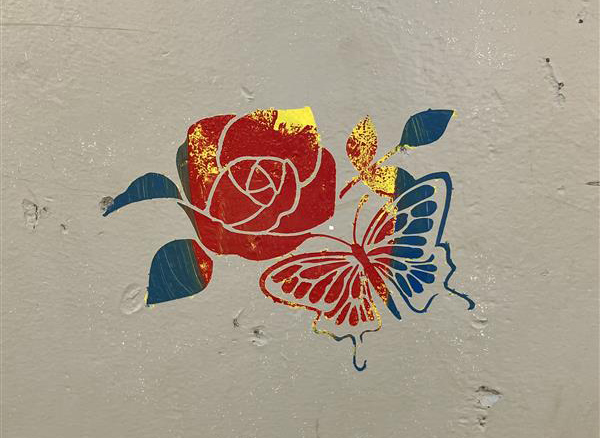 高校生のデザインした柄に、地域のお子様たちが好きに色をつけ、壁面を美しく彩っていただきました。